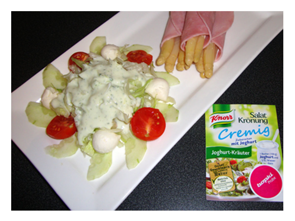 Hier ist auch noch ein Bild einer meiner Salate. Dieser ist mit dem Joghurt-Kräuter-Dressing von Knorr Salatkrönung Cremig.
