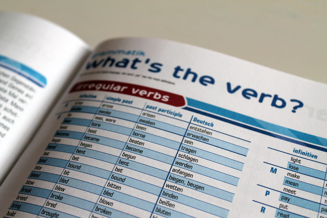 Sehr gut finde ich, dass man, obwohl es „nur“ ein Vokabel-Häfft ist, trotzdem einen Überblick über die Grammatik bekommt und so noch mal schnell Nachschlagen kann. Auch eine vollständige Liste der unregelmäßigen Verben ist vorhanden!