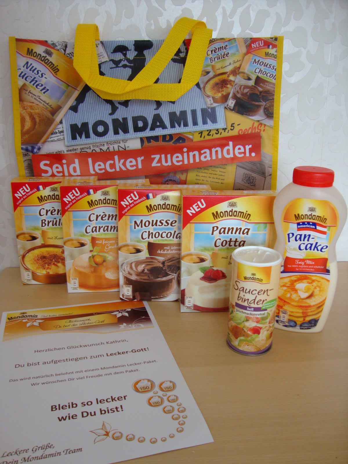 Und das war alles drin: Mondamin Heller Soßenbinder, Mondamin Pancakes Teig-Mix, Mondamin Crème Brulee, Crème Caramel, Panna Cotta und Mousse au Chocolat. Außerdem gab es noch einen „Seid lecker zueinander“-Tragebeutel.